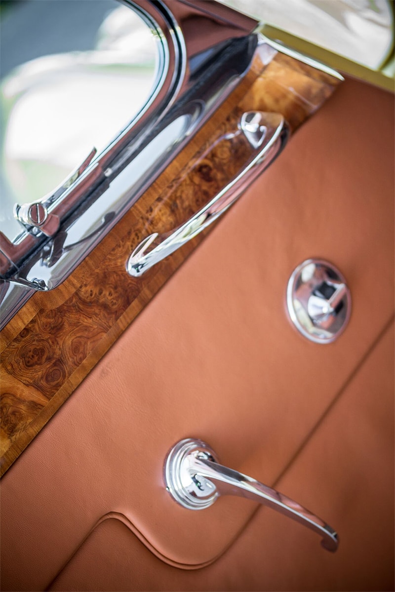 The restored body and chassis were then returned to him in the U.K. where the further modified body was fitted with the hood mechanisms and windows. Returning to the owner's workshop in Spain, the vehicle's assembly was completed and the body painted in Rolls Royce colour Champagne Yellow.