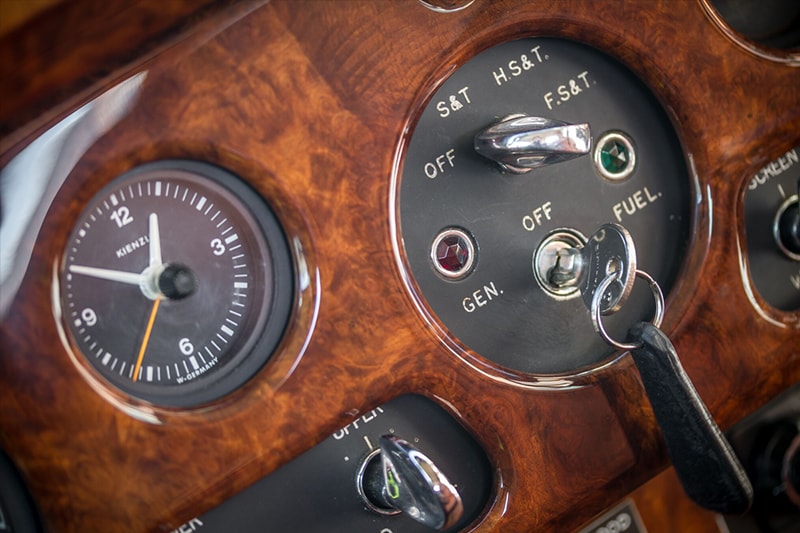 All fitments, i.e. sun visors, hood latches, interior lights etc. are either original or hand crafted copies from the original coach-built cars.